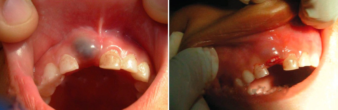 - Цистотомия. Врач формирует в десне отверстие и вскрывает кистозную капсулу. Далее проводится ревизия тканей и удаление некротизированных участков. Затем полость промывается и заполняется тампоном с лекарством. Раз в несколько дней тампон меняется. Лечение продолжается до полного выздоровления.